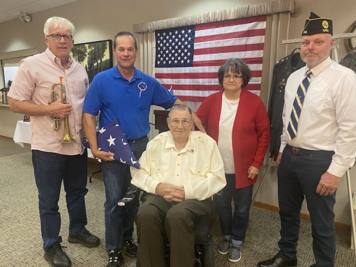 American Legion representative Eric Hartz presented a flag to Dave Latcham in honor of his father’s, John Latcham, service in the United States Army as a Corporal from 1951 until 1957 during the Korean War. John was a former Hammond Center for Assisted Living tenant and St. Francis Manor resident who passed away on June 28, 2022. Dave shared about his father and mentioned that their trip together on the Honor Flight was a great experience and encouraged others to take part in an Honor Flight. Hammond Center tenant and Air Force veteran Bill Wilson presented a military quilt he made to Dave in memory of John Latcham. According to Bill, he and John developed a friendship during their time as tenants at the Hammond Center and enjoyed sharing war stories.