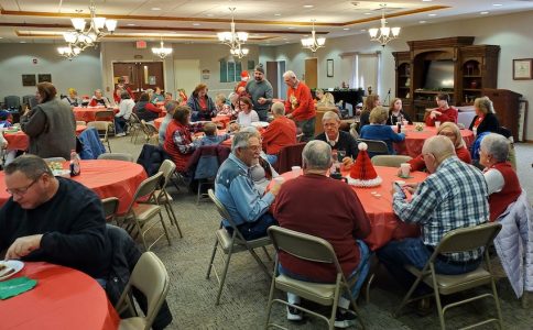 Breakfast with Santa at St. Francis Manor was a fun event for all ages! Over 125 people including four generations of the Madolyn Braley, Gary Foster and Pat Johnson families gathered for an all-you-can-eat pancake breakfast. From babies to 95-year-olds, most enjoyed seeing the jolly elf; however, there were a few who couldn’t be coaxed with a candy cane to sit on Santa’s lap! Some of Santa’s elves better known as Seeland Park residents assisted with serving drinks and clearing tables. The event raised $1,787 to benefit the Hammond Center for Assisted Living Human Needs Fund.