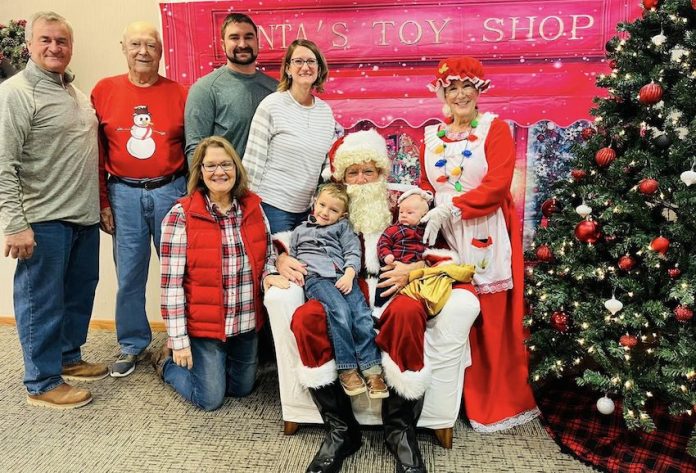 Foster Family – Santa and Mrs. Claus pose with 4-generations of the Foster family. L-R: Dave Van Arkel; Seeland Park resident Gary Foster; Gary’s daughter, Tracee Van Arkel; Gary’s grandson, Zach Van Arkel; Grace Van Arkel; and Gary’s great-grandsons, Henry (3 years) and Finn (3 months).