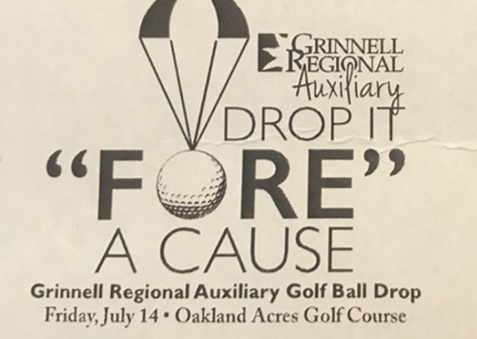 Golf balls are now on sale and can be purchased at The Glass Gift Box at GRMC, Oakland Acres Golf Club, Grinnell College Golf Course, Game Time, Saints Rest, farmer’s market, and online http://bit.ly/AuxBallDrop. Golf balls sell for $10 each or three for $25, seven for $50, or 15 balls for $100. A maximum of 8,000 balls will be sold.