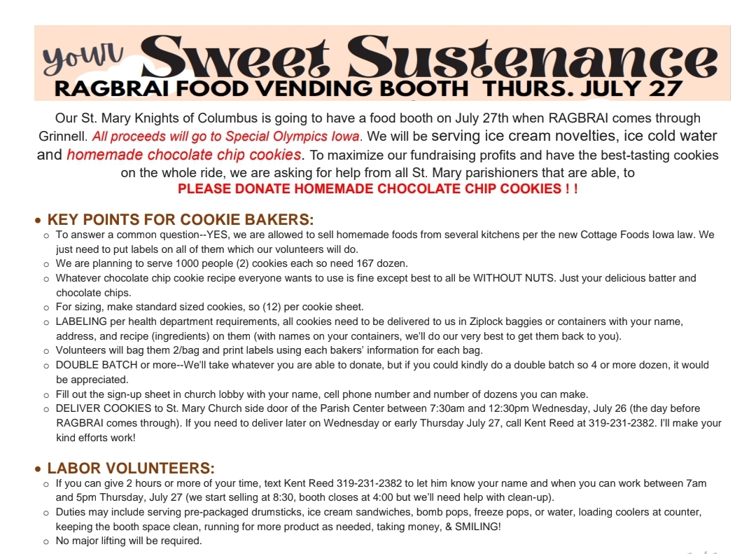 We need helpful volunteers to pull off our successful RAGBRAI fundraiser for Special Olympics next week.