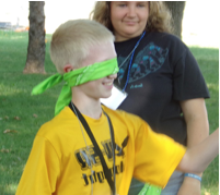 To develop leadership potential in students, organizers staged various activities such as the Trust Walk (left), in which a participant was blindfolded and forced to rely upon a peer to navigate within an area. Communication was limited; only touching was permitted. The exercise teaches the importance of nonverbal communication and the necessity of relying upon another person at times. Such an exercise also helps young people develop empathy for people with disabilities.