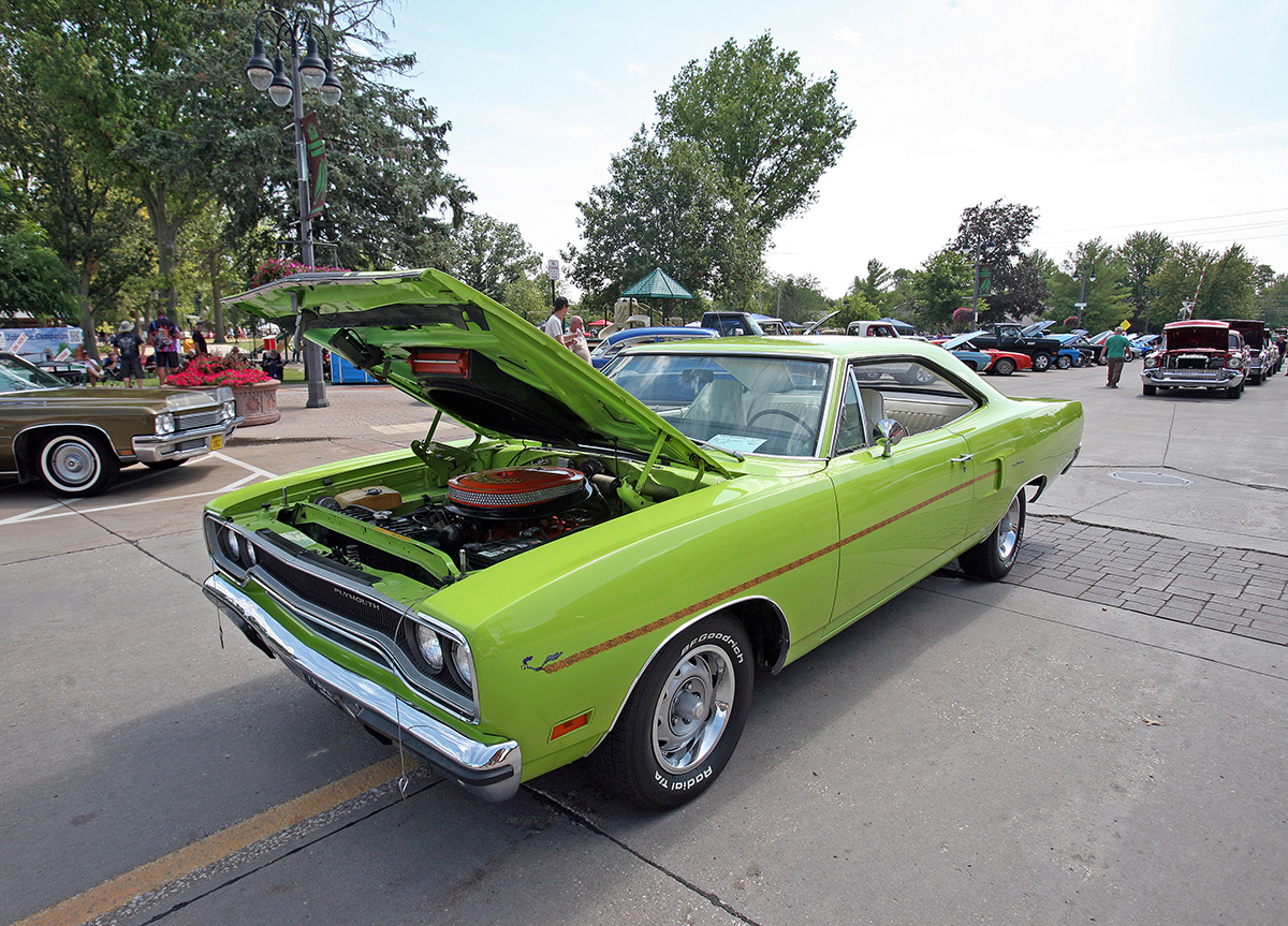 Glen Tiedeman of Swisher enjoyed showcasing his 1971 Plymouth Hemi Cuda at the Grinnell Show & Shine. Glen, who bought the car 15 years ago, has attended around 20 car shows this year and was headed for a show in Dubuque the next day. The Cuda was one of the Top 40 at the car show.