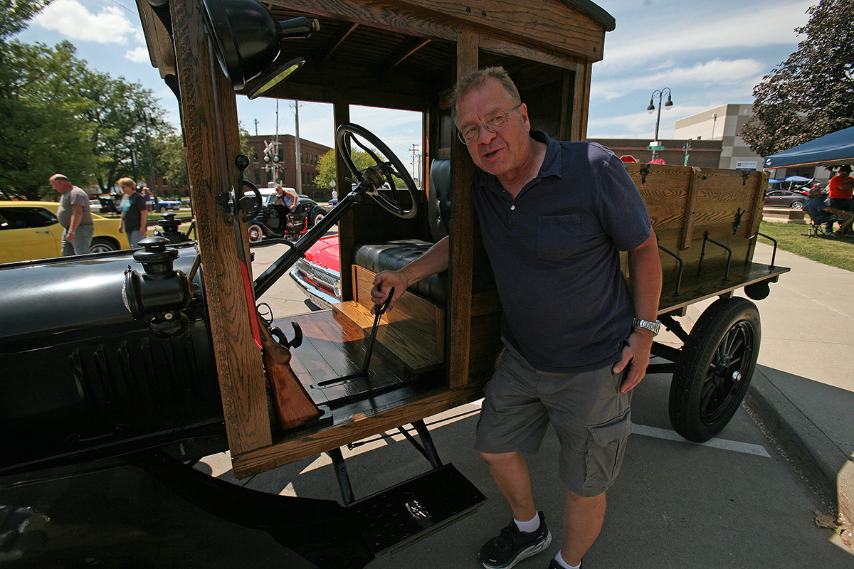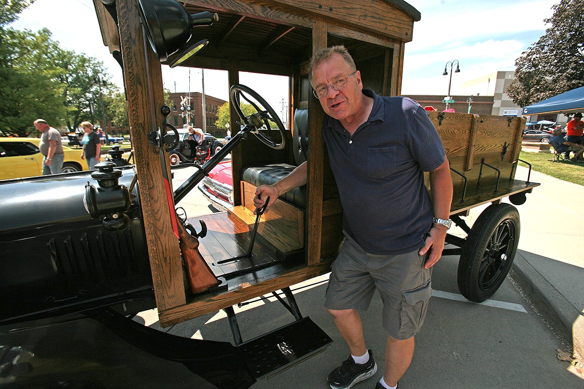 Bill Hammen of Grinnell didn’t have a car at the show, but he was more than happy to talk about a Ford Model TT (ton truck) owned by Ken Knox, who was at the show.