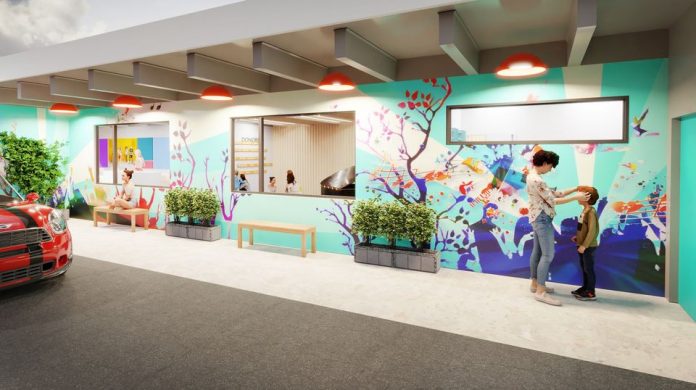 Artist’s rendering of mural placement and drop-off area. (Dan Clark, Generate Design)
