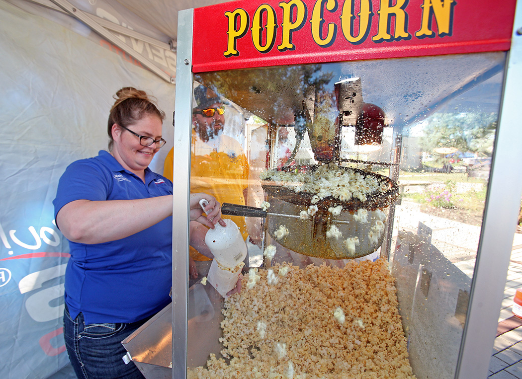 Among the vendors with displays included Rocaza drones, Theisen’s handing out free popcorn, Cub Scouts, Grinnell Historical Society, Read to Lead, Bayer Crop Science, Iowa Corn, Lowery Motor Sports, Van Wall John Deere, J.J. Nichting Case IH Equipment Company, Grinnell Firestone, Sunset Hills Bison Ranch, Poweshiek County Extension and 4-H, Community 1st Credit Union, Lions Eye Bank, Home Health Covid shots, UnityPoint Health Diabetes, and new vehicles from Wes Finch and Steve Link Ford dealerships.