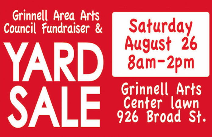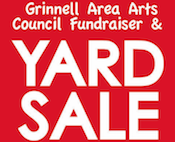 On Saturday, August 26, the Grinnell Area Arts Council will hold a Yard Sale and Fundraiser on their front lawn. The sale is an inspired effort with twofold benefits for the Council: clean out their facilities, and generate funds for their fall programs such as Studio 6. Furthermore, the sale is a fun and casual way to satisfy the City’s downtown task force and their call for the Council to create “small market ambience,” downtown.