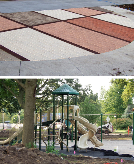 Although construction materials line the south edge of the park and populate its southwest quadrant, other areas stand leveled, with concrete poured and the ground just about ready for grass seed.