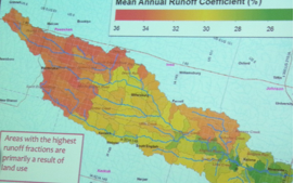 Some disturbing trends emerged, two of which were a general population loss existing within the watershed and upper-watershed communities contributing “significant amounts of runoff into the watershed,” as shown on the map below. To some extent, this situation exists due to steeper and more frequent slopes in the upper portion of watershed.