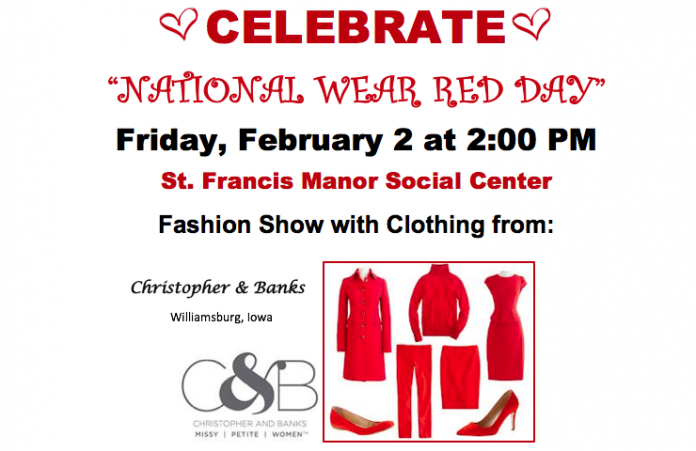A Go Red for Women Fashion Show will be hosted by St. Francis Manor & Seeland Park on Friday, February 2 at 2 PM in recognition of National Wear Red Day. This fun-filled red-hot event is open to the public and will be held in the St. Francis Manor Social Center, located off St. Francis Drive north of 4th Avenue.