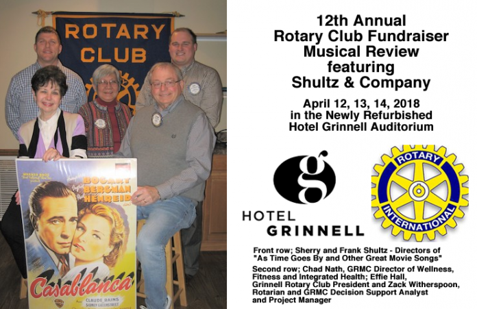 “As Time Goes By and Other Great Movie Songs”, a musical revue featuring the singing group, Shults & Co, will be a major fundraising event this spring for the Grinnell Rotary Club, according to club president, Effie Hall.