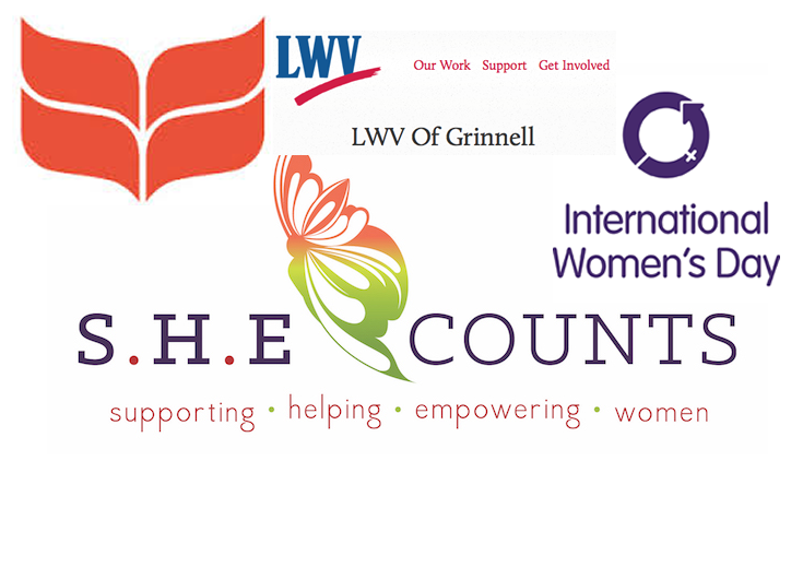 The Grinnell League of Women Voters and S.H.E. Counts are planning an event on March 8, International Women’s Day, to celebrate and encourage the next generation. The local event is also a fundraiser to provide a $500 S.H.E. Counts scholarship to a Grinnell High School graduating senior who is the first in her family to attend college.