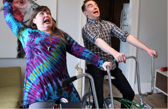 One event featuring wheels inspired another when, on March 11, 2017, the two art-and-bicycle enthusiasts pictured above, Melissa Berman and Ryan McGuire, attending the Grinnell Skate & BMX Park fundraising project, discussed possible combinations of art on wheels.