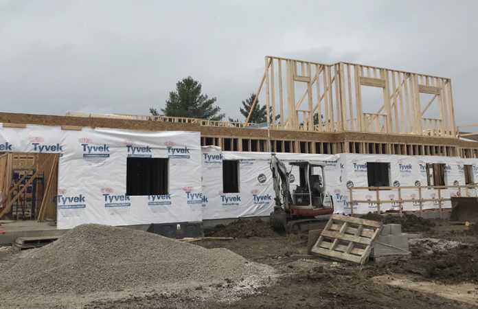 (Grinnell, IA – May 2, 2018) With a scheduled opening this November, construction is progressing on the Hammond Center for Assisted Living addition to the St. Francis Manor & Seeland Park Life Plan Community. Framing of the Hammond Center’s first floor rooms has been completed and the second floor has been installed. Crews have also poured cement for the flooring in the basement that will house amenities designed to improve the quality of life for all campus residents. The 2-story assisted living community will include 20 apartments ranging in size from studio to two-bedroom and will connect to the 10-plex apartments and the Administration Offices on the east side of St. Francis Manor.