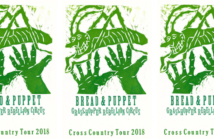 After the performance, Bread and Puppet will serve its popular free sourdough rye bread with aioli. In addition, Bread and Puppet’s “Cheap Art” — books, posters, postcards, pamphlets and banners from the Bread and Puppet Press — will be for sale.