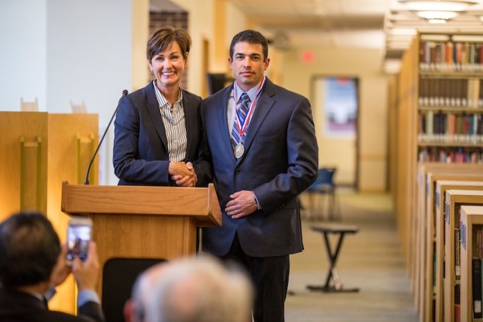 Iowa Gov. Kim Reynolds presented the Iowa Award to Noyce’s grandson in the Noyce Science Center