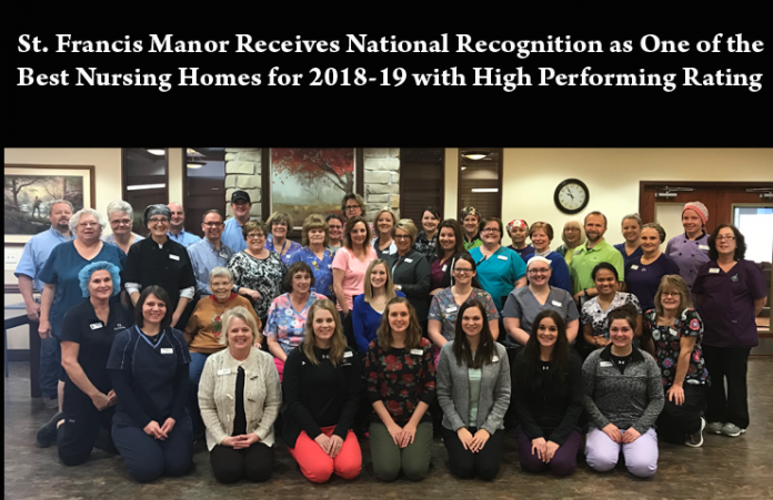 (Grinnell, IA – December 11, 2018) U.S. News & World Report has identified St. Francis Manor as one of the Best Nursing Homes for 2018-19 with an Overall Rating of “High Performing” for the second consecutive year. As the global authority in healthcare rankings, U.S. News & World Report has awarded this designation to St. Francis Manor based upon its nurse staffing levels, medical quality measures and state-conducted health inspections. Outof a total of 439 Iowa nursing homes, only 80 are rated as top performing for 2018-19.
