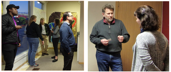 At approximately 6:30 p.m., attendees moved to the Arts Center across the street for an informal discussion in the round facilitated by Katie In and Erik Jarvis of the Grinnell Area Arts Council.