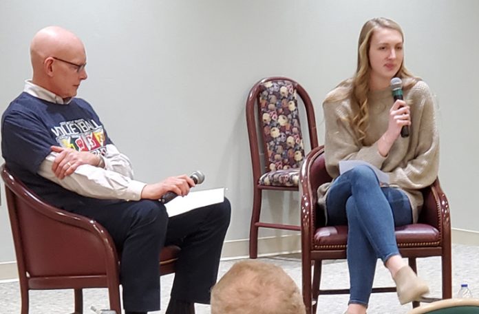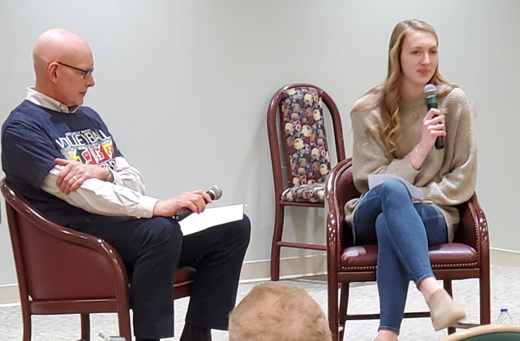 Hannah Lockin, junior student-athlete at Baylor University, Waco, Texas, shared experiences from her successful volleyball and academic career on Tuesday, January 7th in The Mayflower Community. Hannah was interviewed by her father Doug Lockin, who has been Mayflower’s planned giving consultant since 2008.