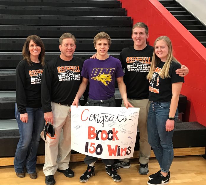 Brock Beck, 4th wrestler in GHS history to break #150 wins. He finished last Saturday tournament at Williamsburg with #152. School record is 166 wins (Brody Beck).
