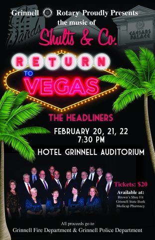 Shults & Co. Musical Revue “Return to Vegas/The Headliners” Rotary Fundraiser to Appear at Hotel Grinnell.