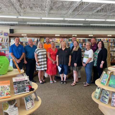 Ambassadors had a great visit this morning with Pioneer Bookshop, Grinnell College to talk about the upcoming Ridiculous Day event and new offerings from the bookstore. Manager Cassie Wherry gave a run down of participating businesses and home based vendors who will be on Main Street for the July 23 event. There are a number of community events happening that day so make plans to head downtown to check it all out! Visit our community calendar for more details.The bookstore has recently added a new line of Grinnell College/community themed products including kitchen towels, coasters, notecards and canisters. They also have discounted NYT best sellers, lots of kids activity books, novels, textbooks, GC swag and more! We’ll be highlighting all the member businesses participating in Ridiculous Day on Facebook LIVE starting tomorrow so make plans to join us and see what everyone has to offer!